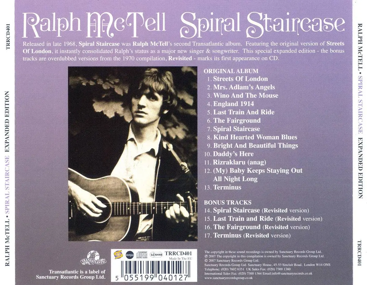 "Spiral Staircase" (1968) was McTell's second album and includes the original version of "Streets Of London". Includes original sleeve artwork, expanded via contemporaneous bonus tracks, compiled with McTell's full help and co-operation.