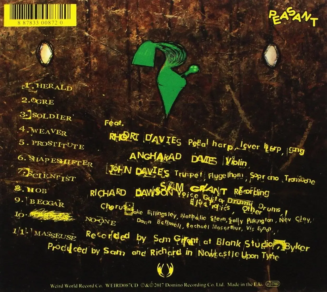 Peasant will grab newcomers to Richard Dawson’s work by the scruff of the neck and refuse to let them go until they have signed a pledge of life-long allegiance. Dawson spent years incubating his singular art on the Newcastle experimental scene. Devotees of his earlier recordings will be at once intrigued by and slightly fearful of the prospect of a record that could make his three landmark releases - 2014’s Nothing Important; 2013’s The Glass Trunk’s; 2012’s The Magic Bridge’s - look like formative work. Peasant is that album.