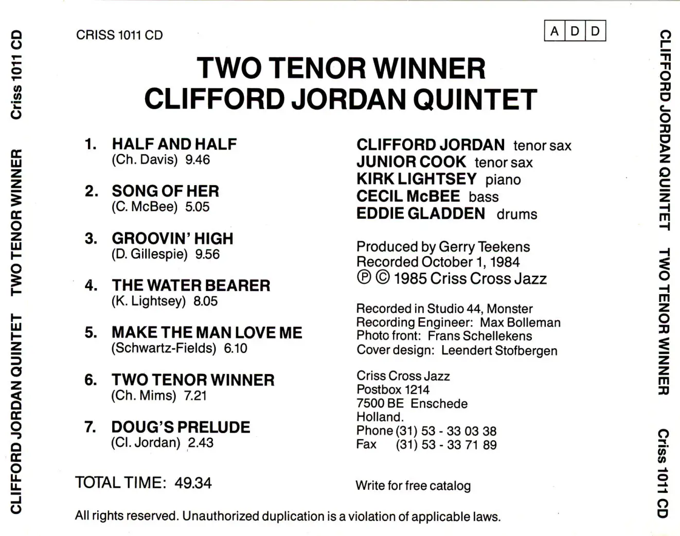Clifford Jordan Quintet – Two Tenor Winner (1984) (Repost By Request)