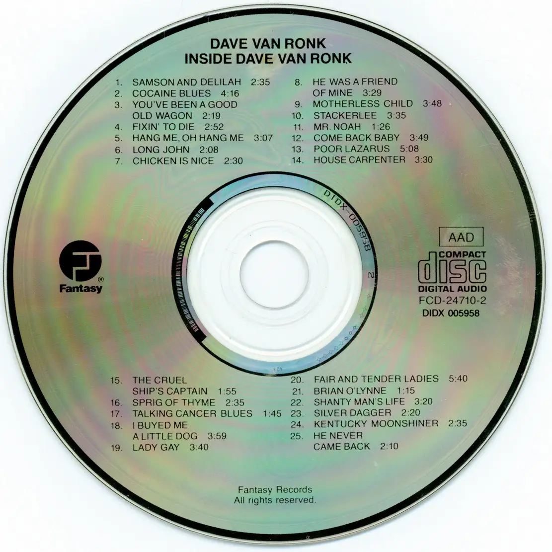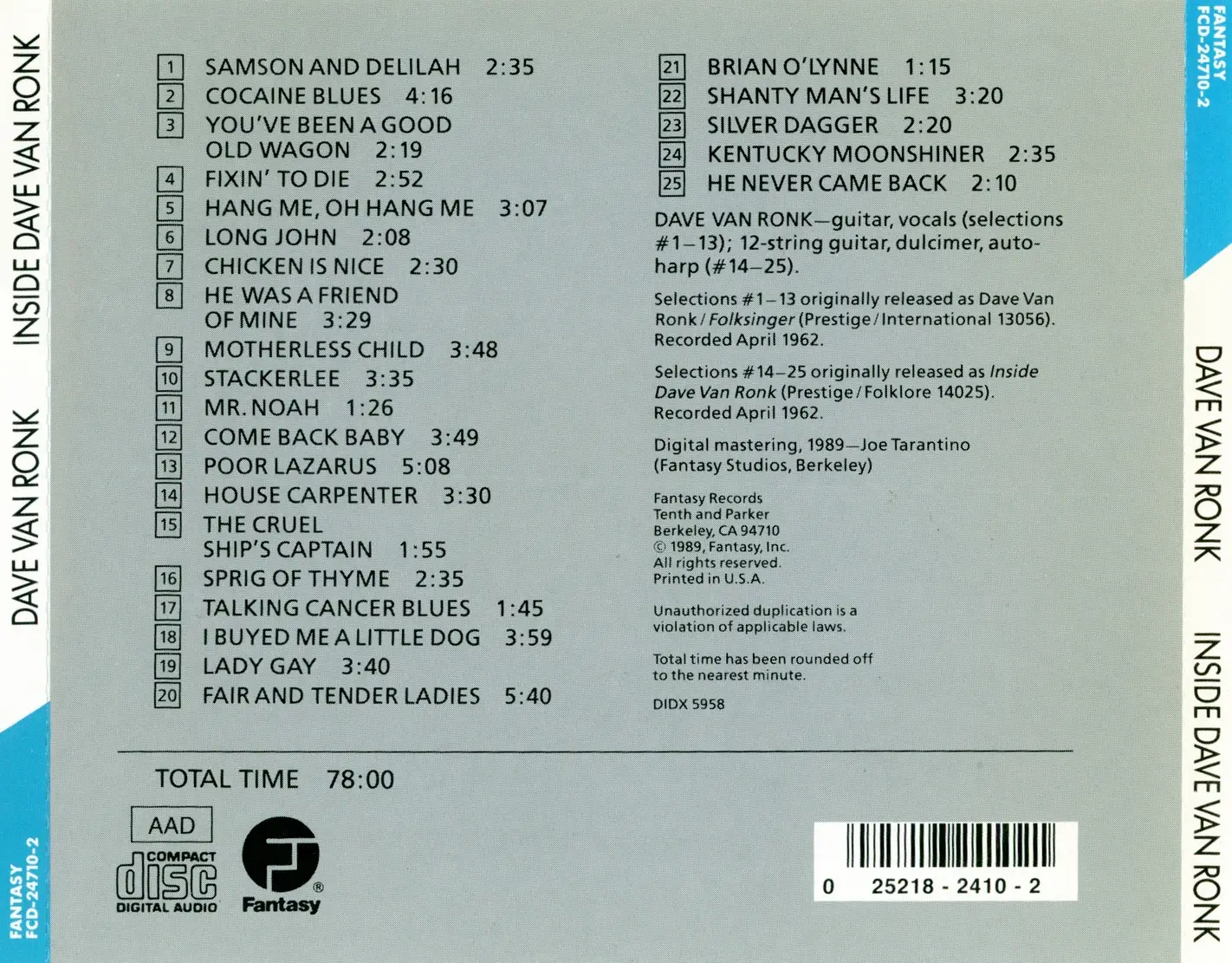 Dave Van Ronk - Inside Dave Van Ronk (1962) {Fantasy FCD-24710-2 rel 1989}
