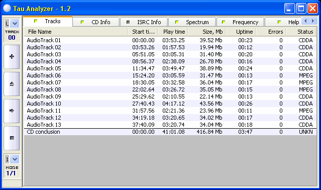 TOC of the extracted CD