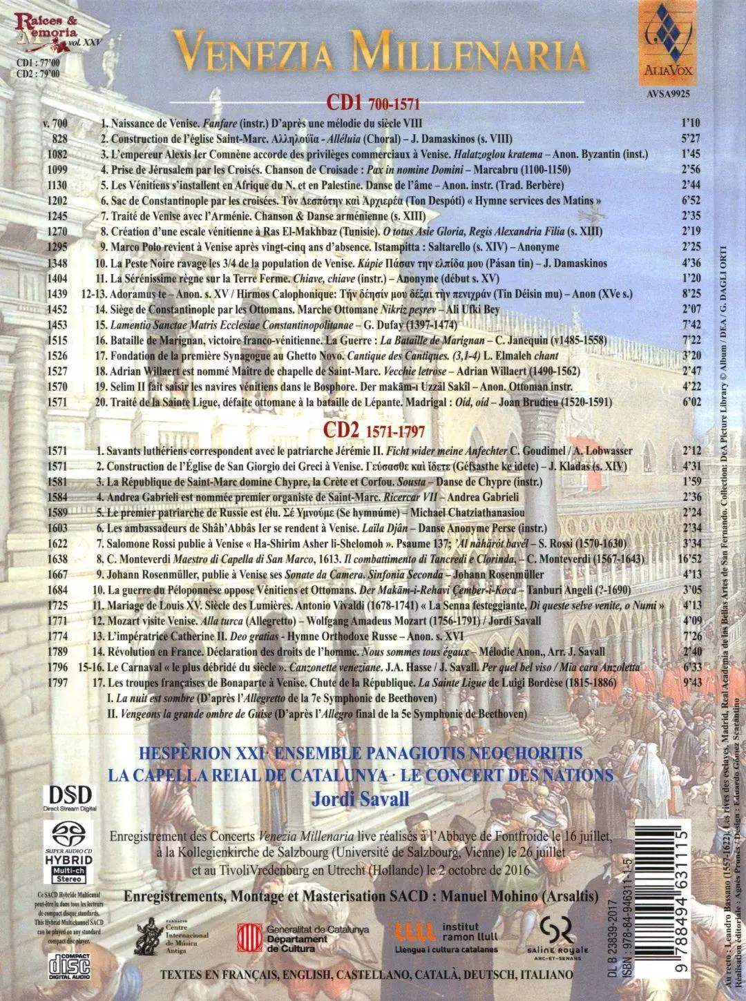 Jordi Savall & Hespèrion XXI - Venezia Millenaria 700-1797 (2018) {Alia Vox Official Digital Download AVSA9925}