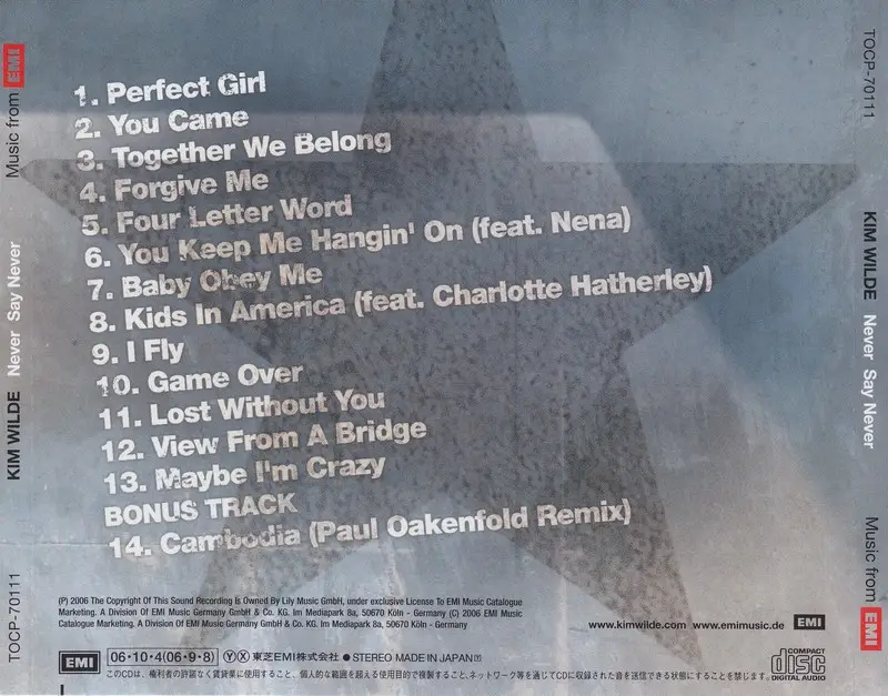 ![Kim Wilde - Never Say Never [Japan Edition] (2006)](https://pixhost.icu/avaxhome/b4/2f/00162fb4.jpeg)
