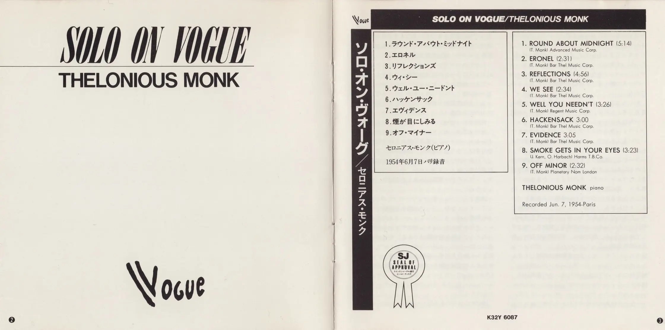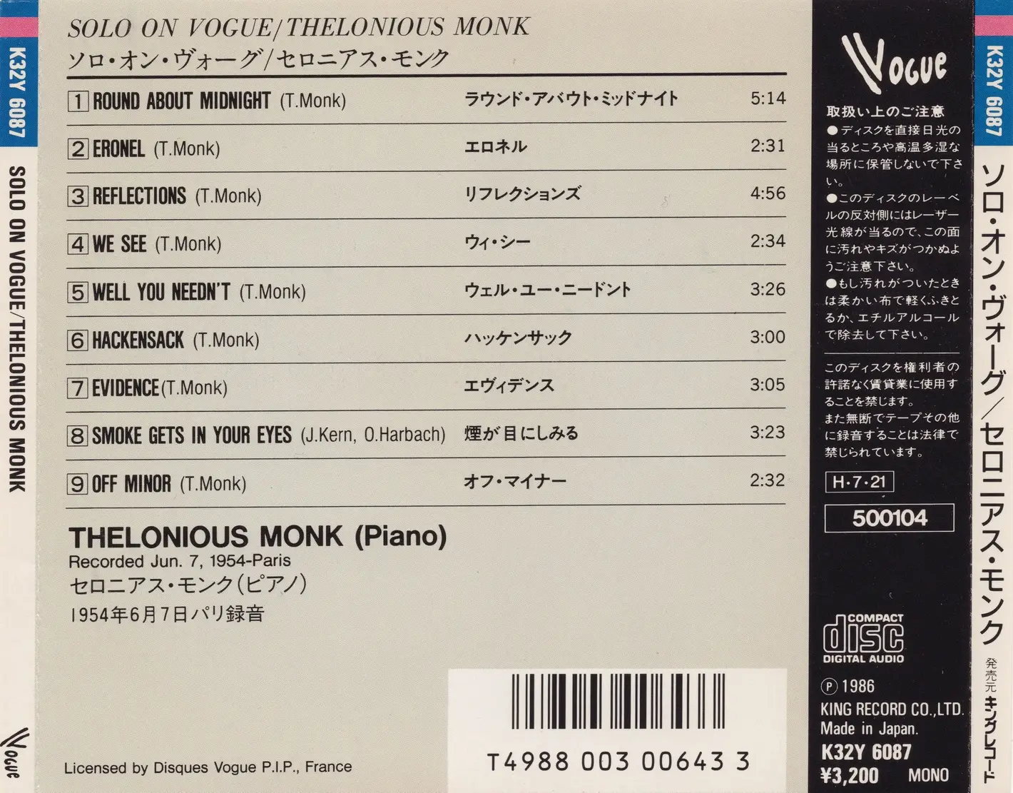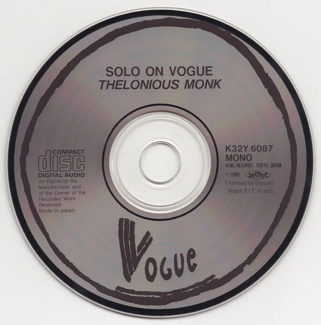 Thelonious Monk - Solo On Vogue (1954) {Vogue Japan, K32Y-6087, Early Press}