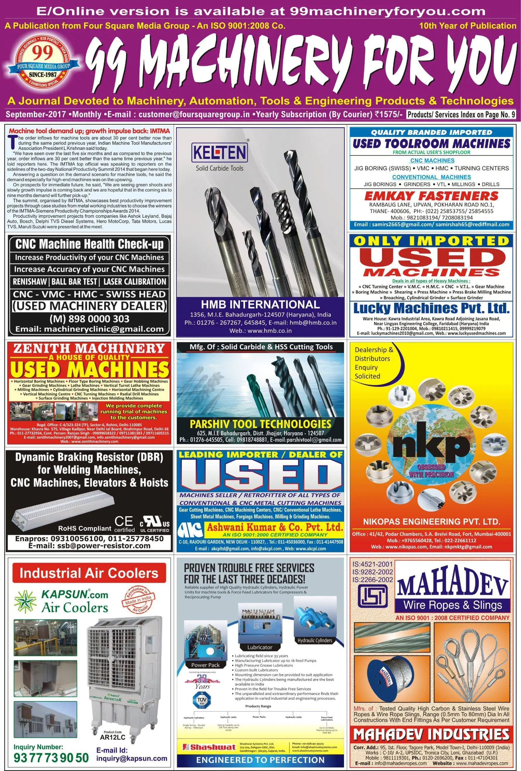 99 Machinery For You is a preeminent Business Journal completely devoted to Machinery, Automation, Tools & Engineering Products & Technologies. It is one of the leading Business Journals published by Four Square Media Pvt. Ltd.- The Biggest Publisher of Business Journals in India. So, you don't have to worry about the quality and reliability as we are a client-centric firm, take "Client Satisfaction" as our utmost priority.
