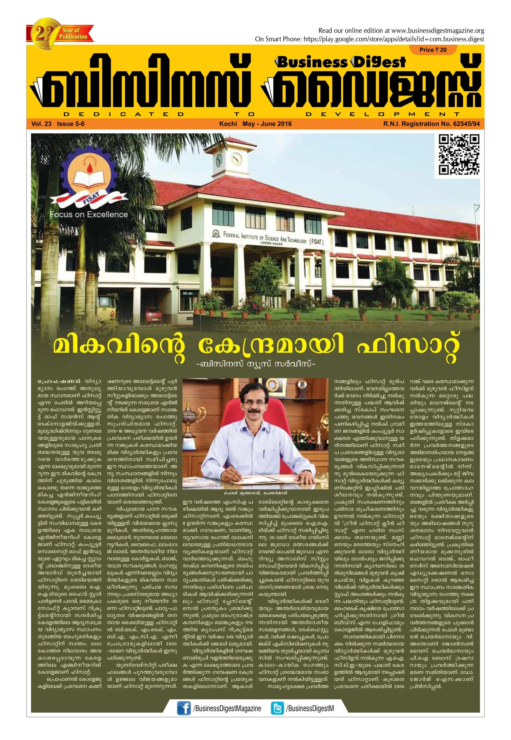BUSINESS DIGEST is today a leading Malayalam business periodical enjoying a strong reading base of approx 4 lacs, supported by its popular online edition in English. It is being published from Kochi, circulated across Kerala and subscribed to all over India. The magazine is in its 22nd year of publication provides comprehensive and updated information on trade, industry, investment opportunities and education. Its contents also include regular analytical articles and columns on the latest trends and developments in trade and industry. You can know more about it by reading the digital copy of its recent issues by visiting our website.