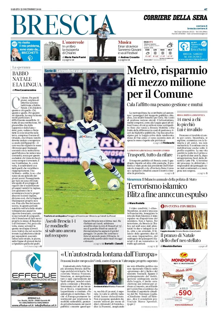 Corriere della Sera Brescia – 22 dicembre 2018