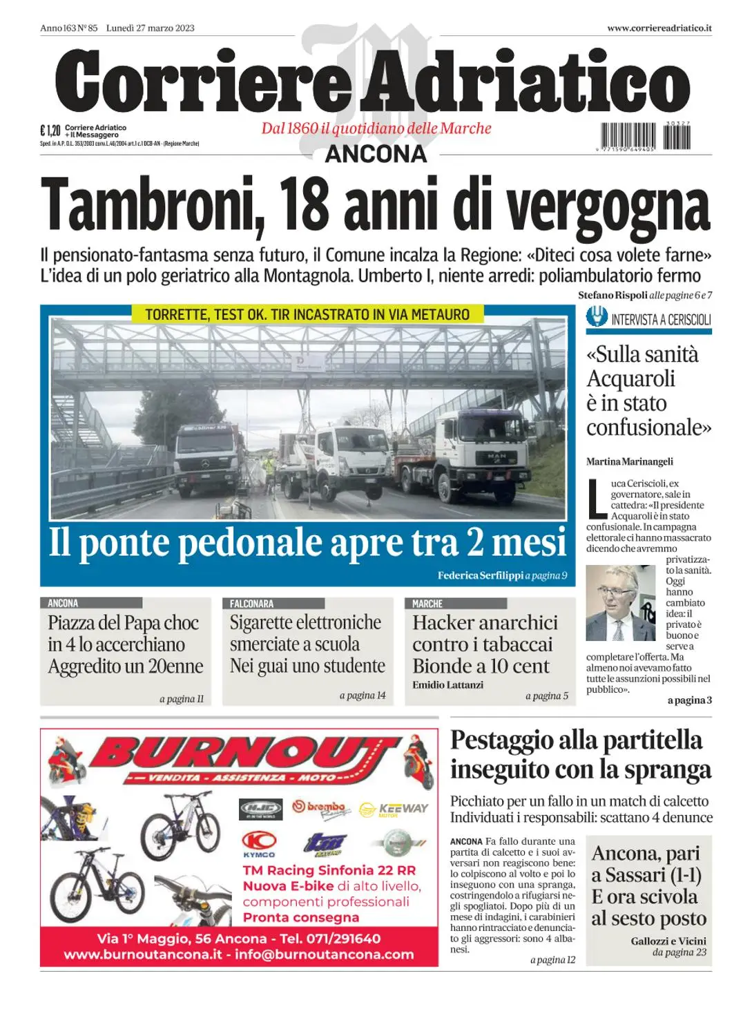 Corriere Adriatico Ancona - 27 Marzo 2023