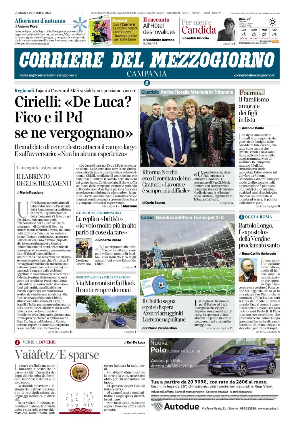 Corriere del Mezzogiorno Campania - 19 Ottobre 2025