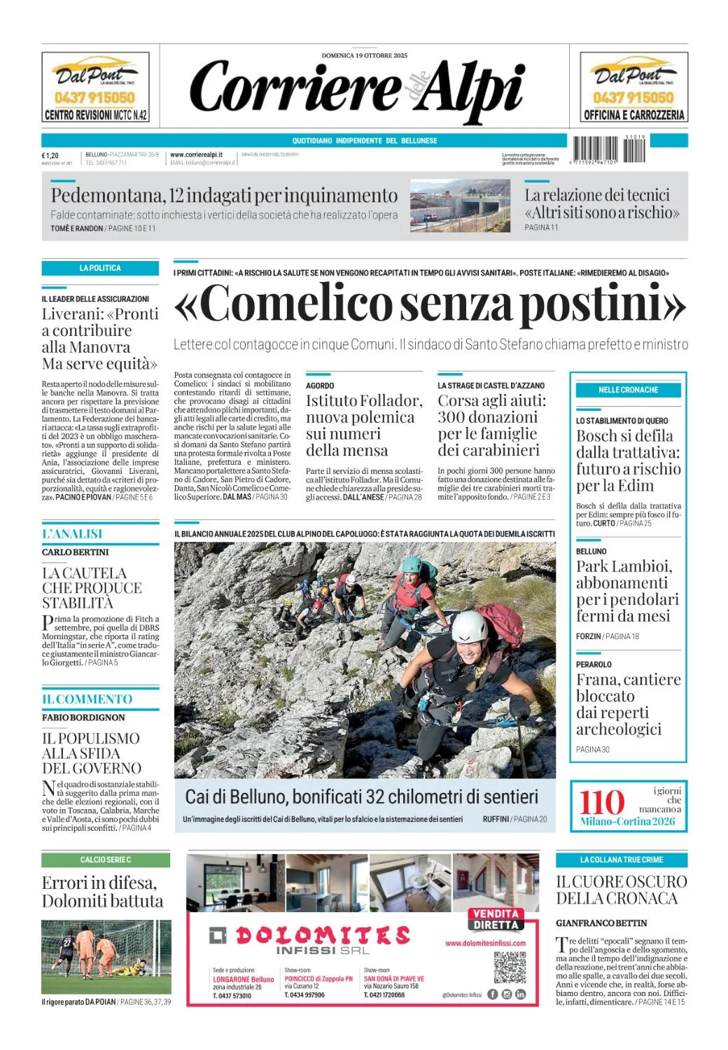 Corriere delle Alpi - 19 Ottobre 2025