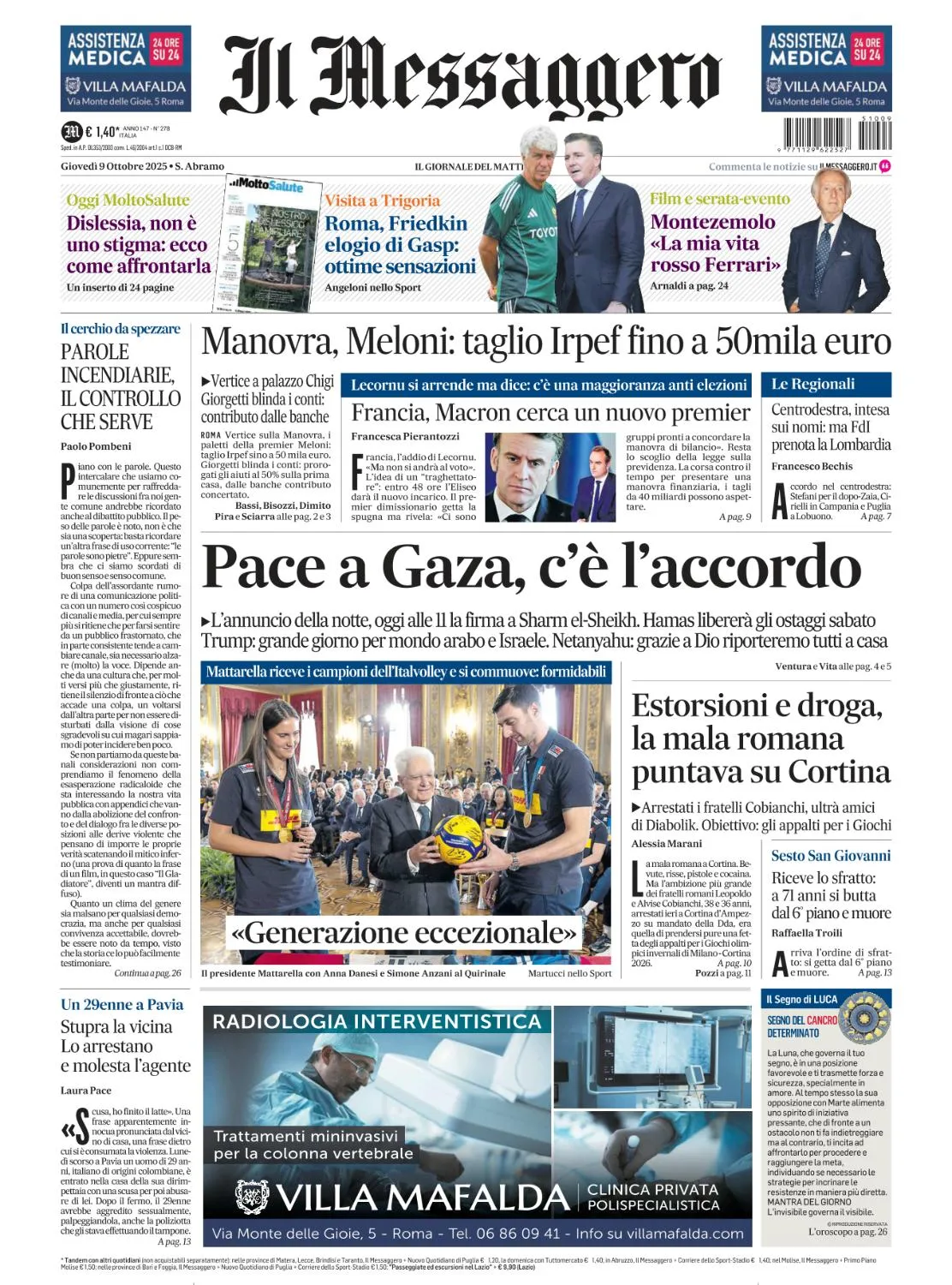 Il Messaggero Roma - 9 Ottobre 2025