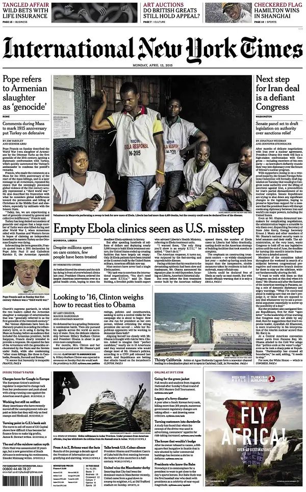International New York Times - Monday, 13 April 2015