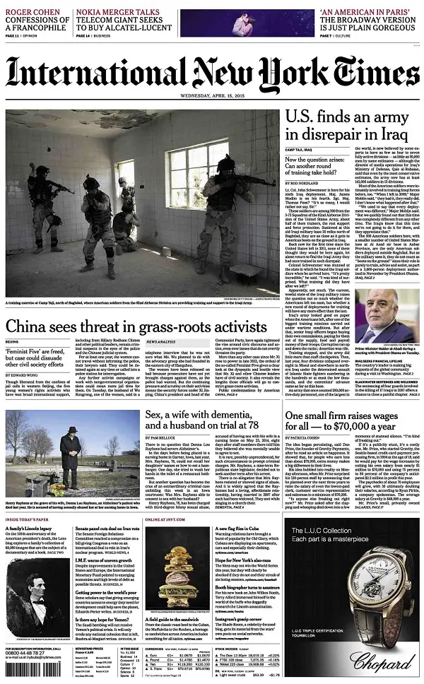 International New York Times - Wednesday, 15 April 2015