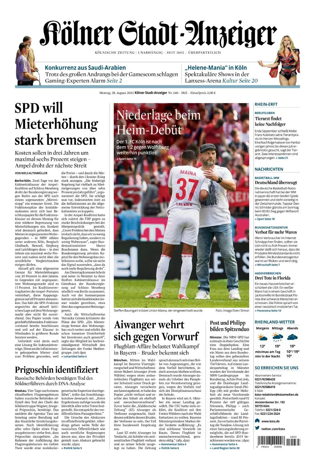 Kölner Stadt-Anzeiger Köln-Land-Erftkreis - 28 August 2023
