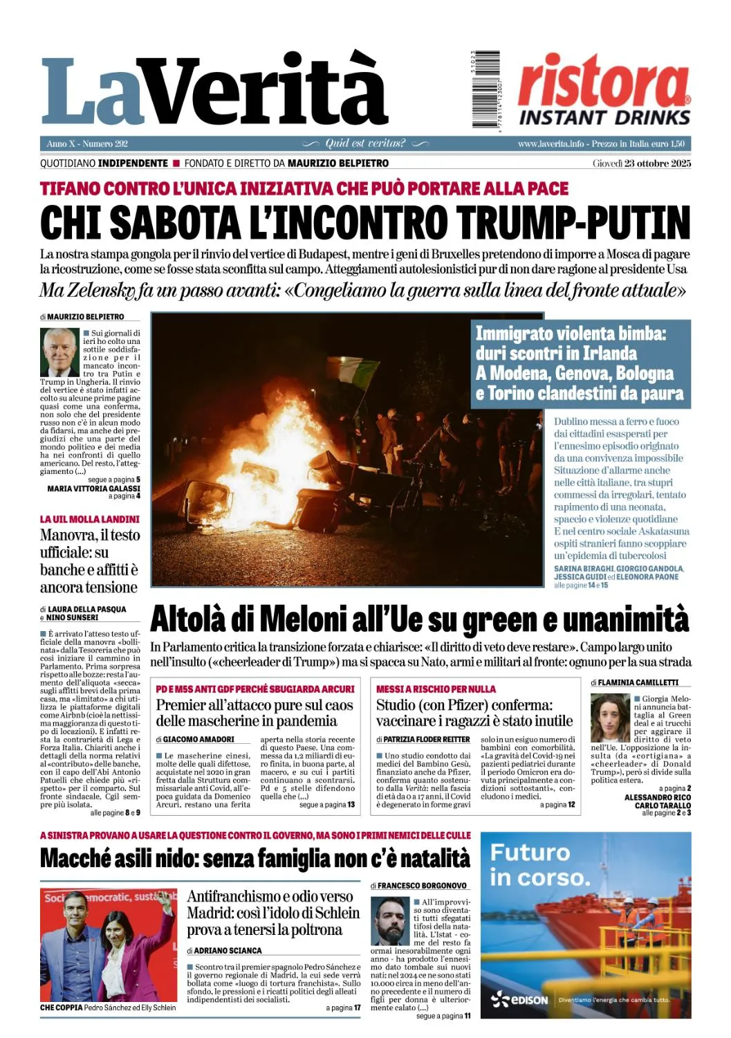 La Verita - 23 Ottobre 2025