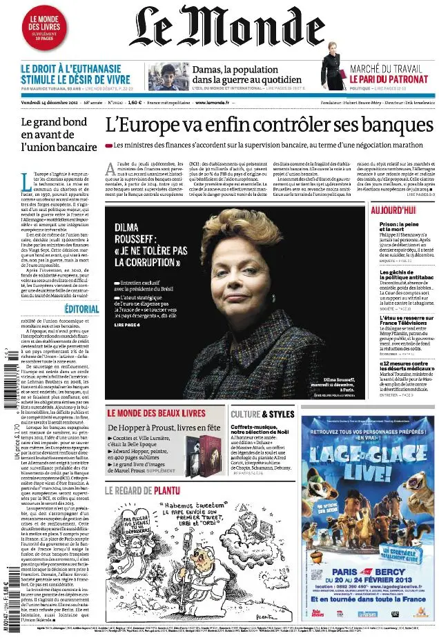 Le Monde et Le Monde des Livres du Vendredi 14 Décembre 2012