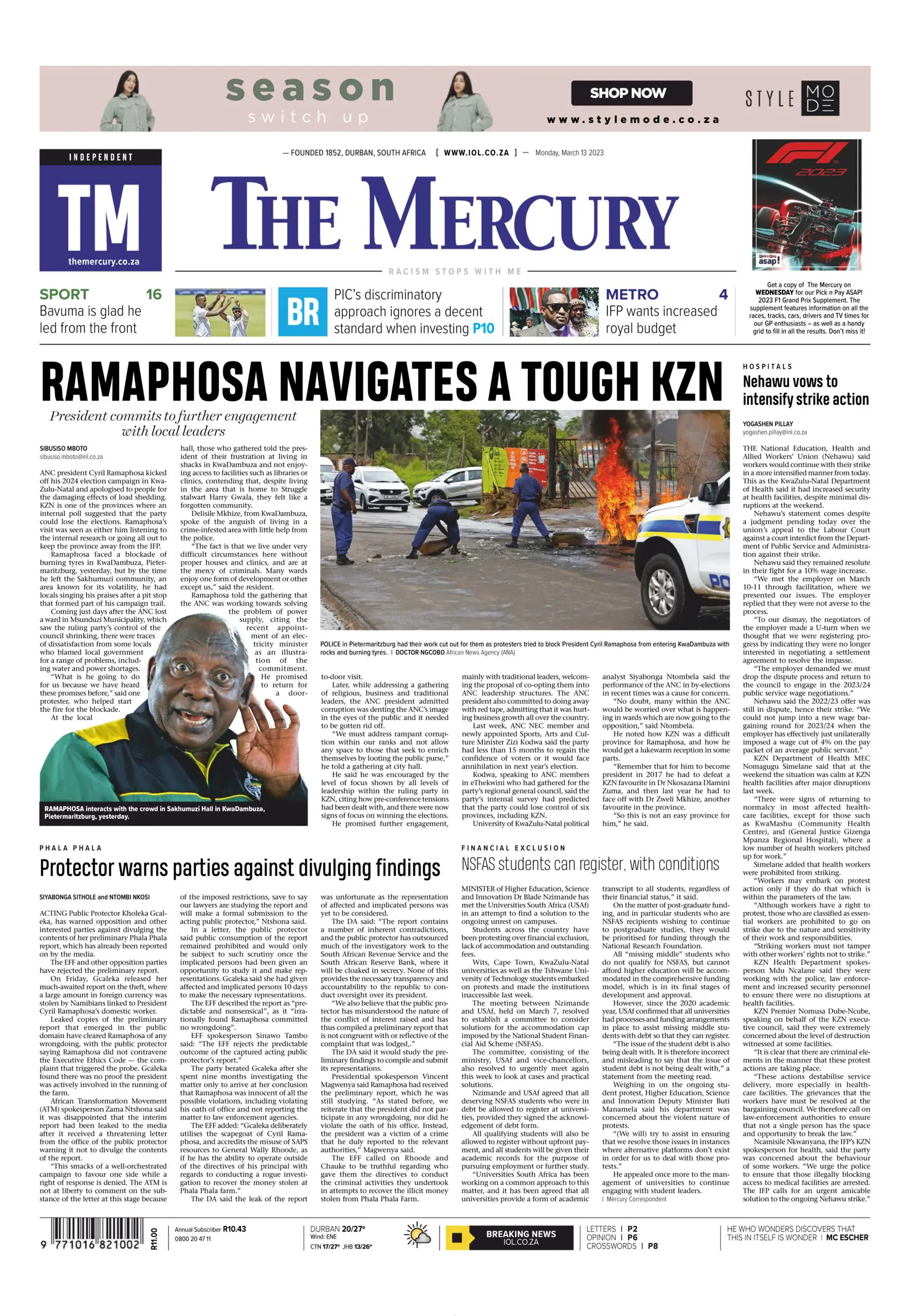 The Mercury is positioned to appeal to achievers with a high disposable income, and the upwardly mobile. This includes professionals, business people, opinion makers, political leaders, public servants, and academics as well as sports and arts enthusiasts. Its readers recognise that they should be plugged into their city, province and country and indeed the world to inform their decision-making and achieve success. The newspaper’s crisp and credible reporting ensures that readers get a “head start” every morning.