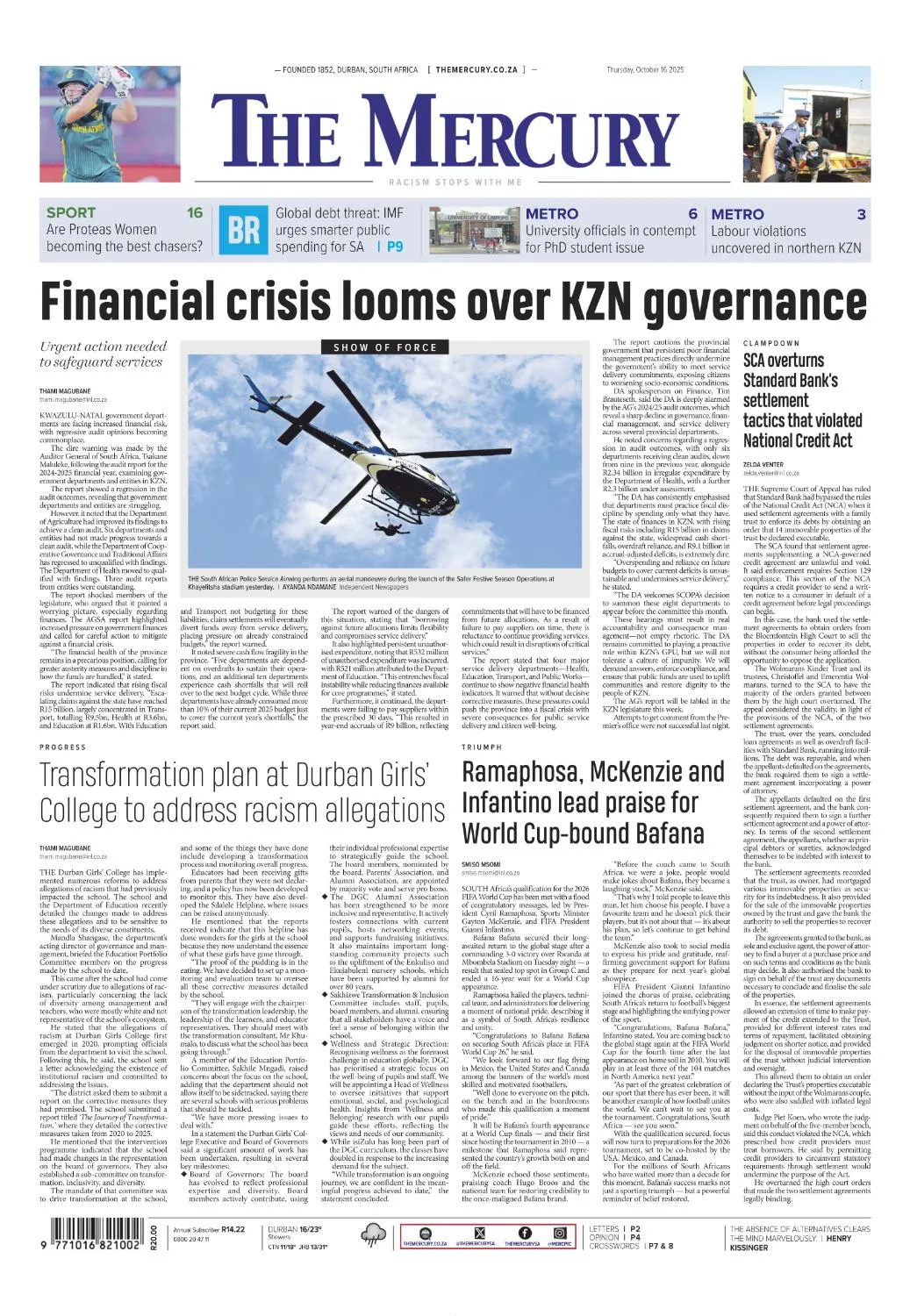 Morning daily covering KwaZulu-Natal with national and local reporting, in-depth business coverage and analysis through dedicated opinion and enterprise pages.