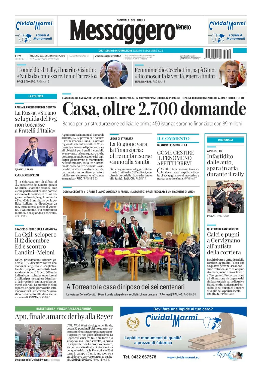 Messaggero Veneto Udine - 8 Novembre 2025