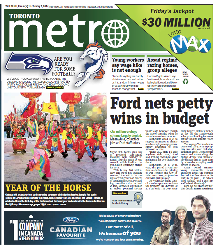 Metro [Canada - Van | Tor | Mon | Ott | Edm | Hal | Lon | Win | Sas], 31. January 2014
