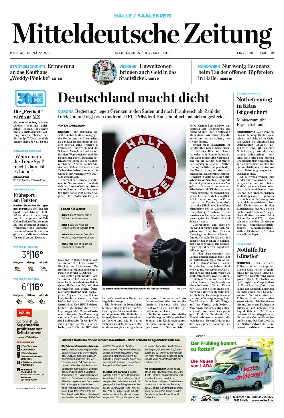 Mitteldeutsche Zeitung Bernburger Kurier – 16. März 2020