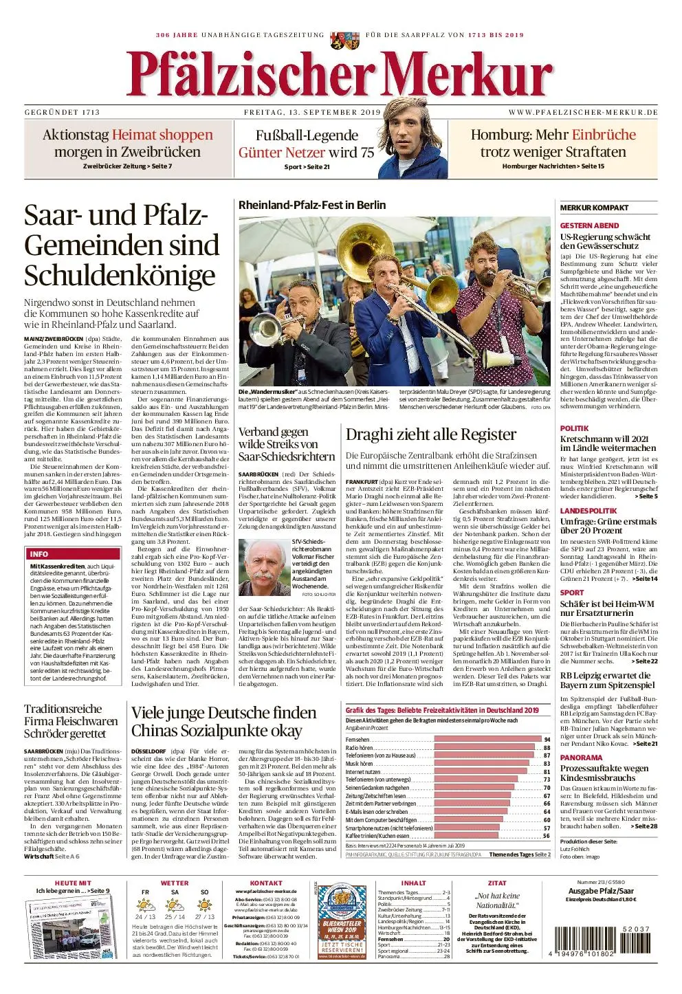 Pfälzischer Merkur – 13. September 2019