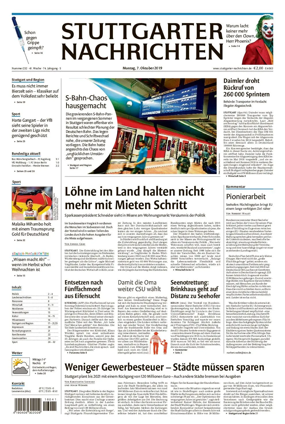 Stuttgarter Nachrichten Leonberg und Umgebung - 07. Oktober 2019