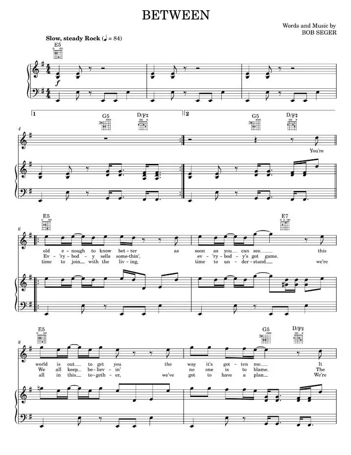 Between - Bette Midler, Bob Seger (Piano-Vocal-Guitar)