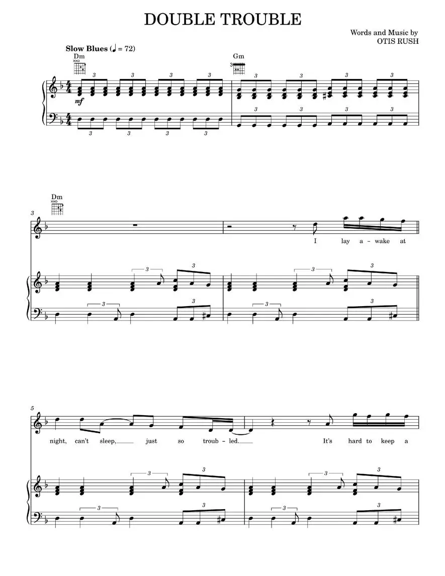 Double Trouble - Otis Rush (Piano-Vocal-Guitar)
