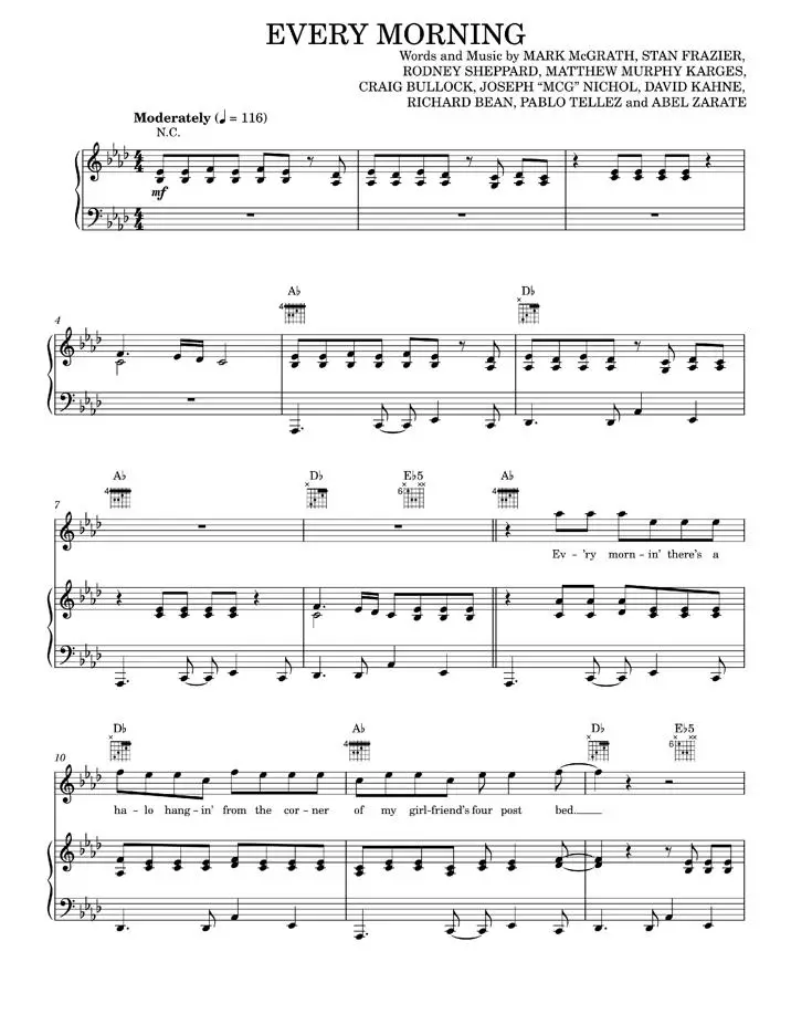 Composer: Words and Music by MARK McGRATH, STAN FRAZIER, RODNEY SHEPPARD, MATTHEW MURPHY KARGES, CRAIG BULLOCK, JOSEPH “MCG” NICHOL, DAVID KAHNE, RICHARD BEAN, PABLO TELLEZ and ABEL ZARATE