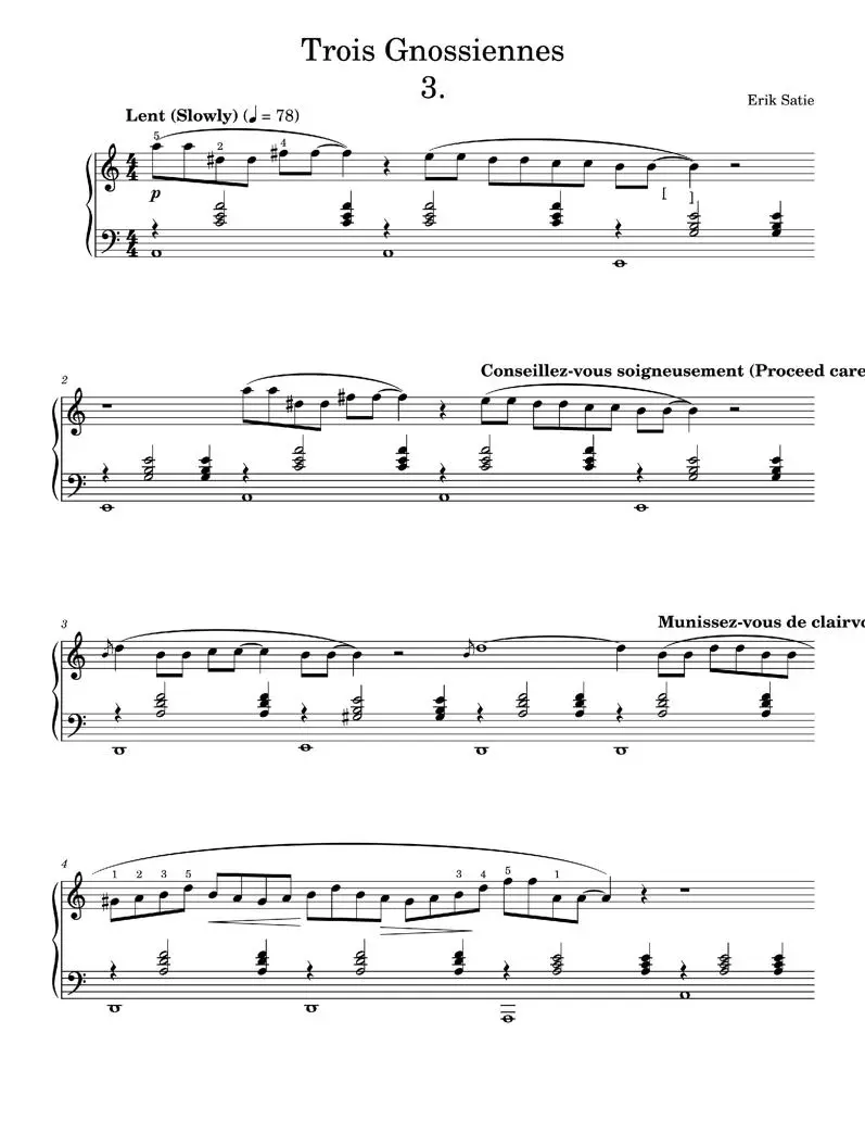 Gnossienne no 3 - Erik Satie (Piano Solo)