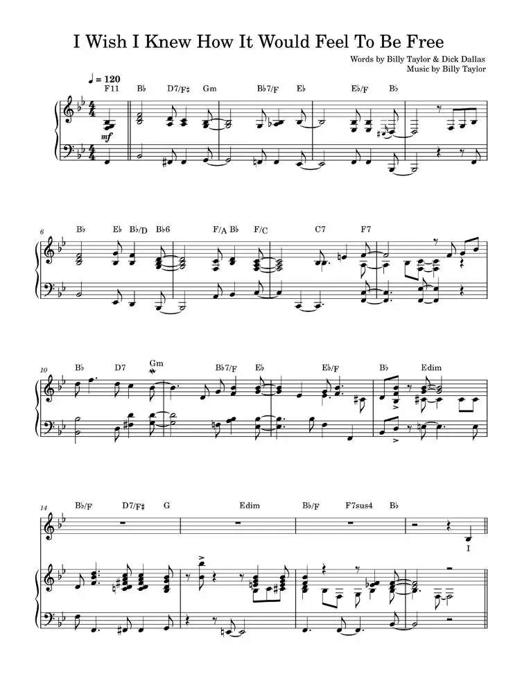 I wish i knew how it would feel to be free - Nina Simone (Piano-Vocal-Guitar (Piano Accompaniment))