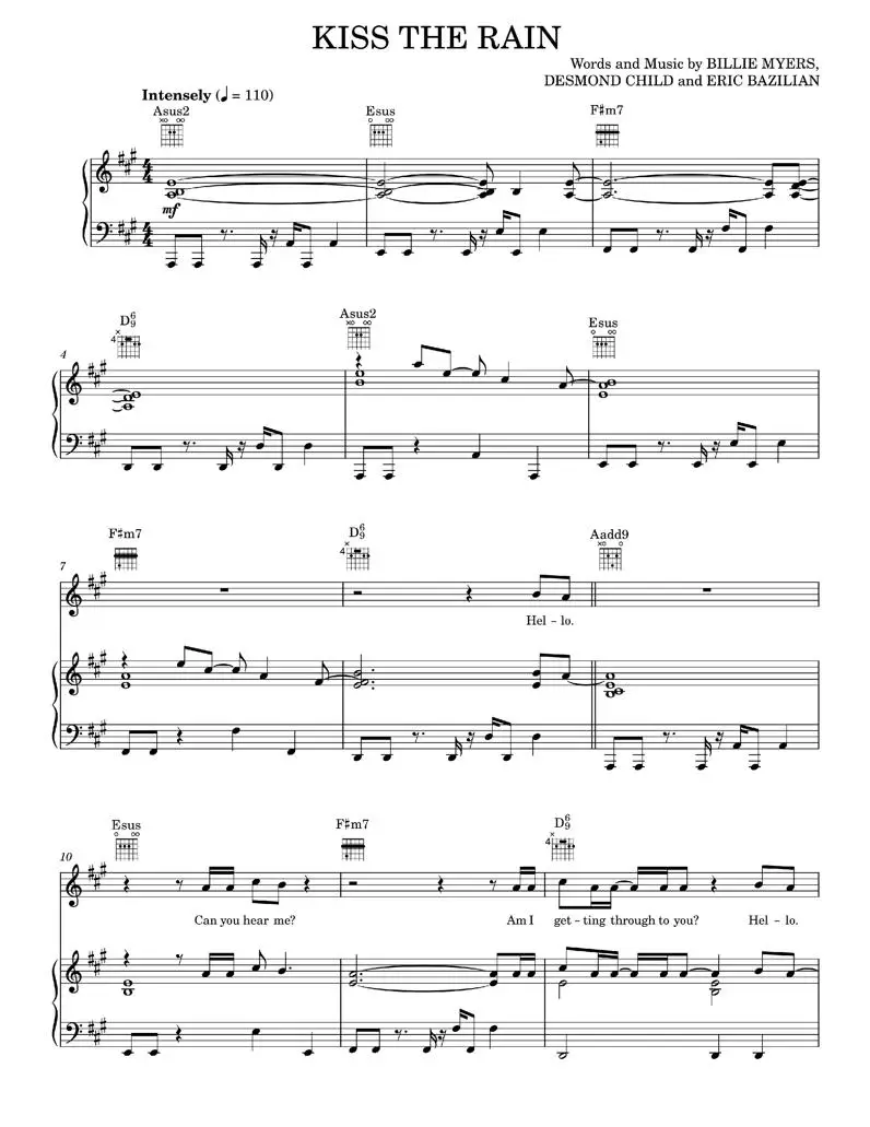 Kiss The Rain - Billie Myers, Desmond Child (Piano-Vocal-Guitar)