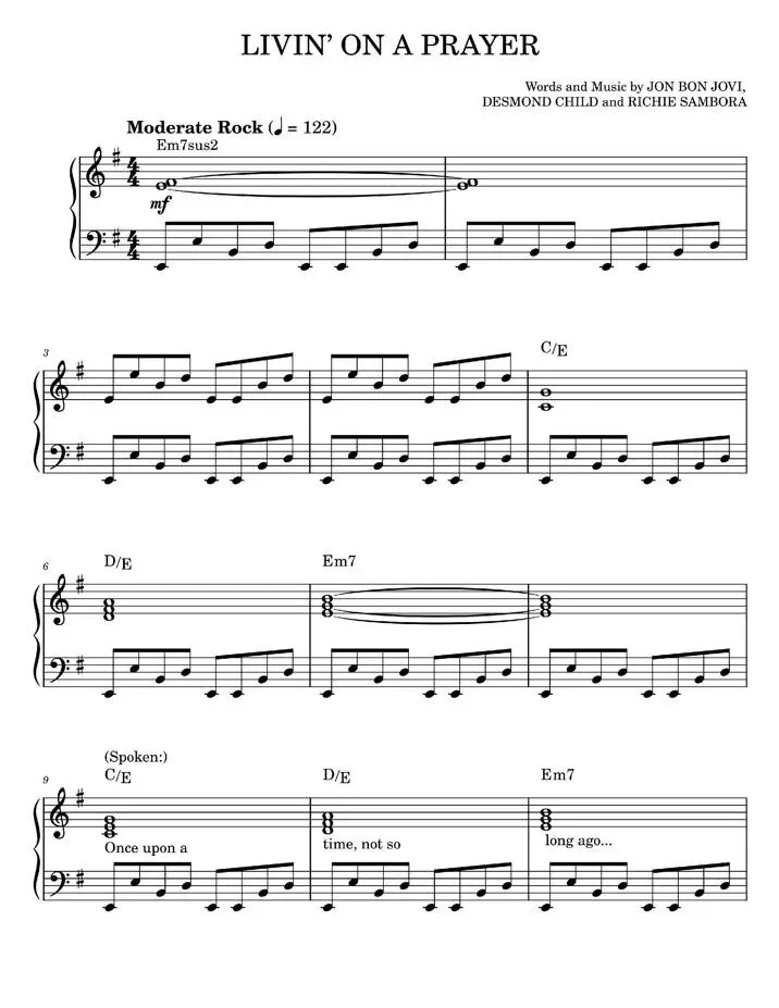 Livin' On A Prayer - Bon Jovi, Jon Bon Jovi (Easy Piano)