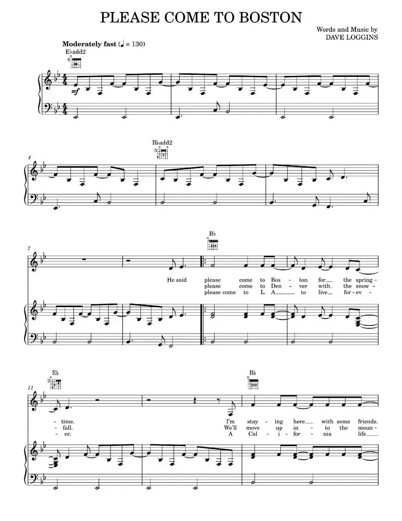Please Come To Boston - Dave Loggins, Glen Campbell (Piano-Vocal-Guitar)