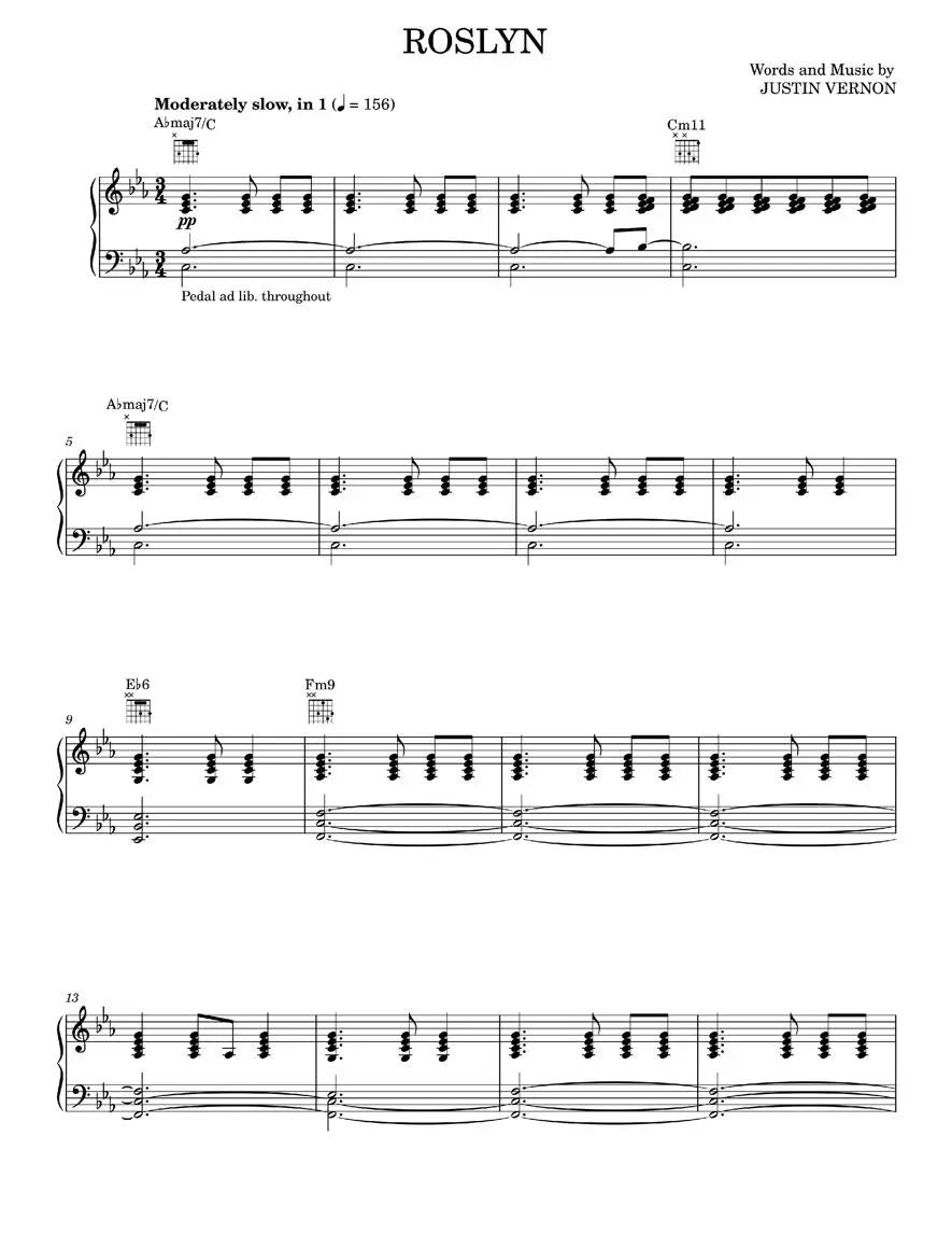 Rosyln - Bon Iver, Bon Iver & St. Vincent, Justin Vernon, Twilight: New Moon Movie (Piano-Vocal-Guitar)