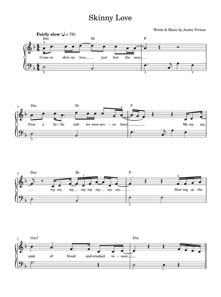Skinny Love - Birdy, Bon Iver (Easy Piano)
