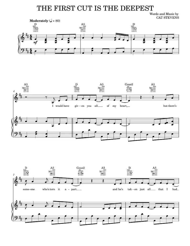 The First Cut Is The Deepest - Rod Stewart, Sheryl Crow (Piano-Vocal-Guitar)