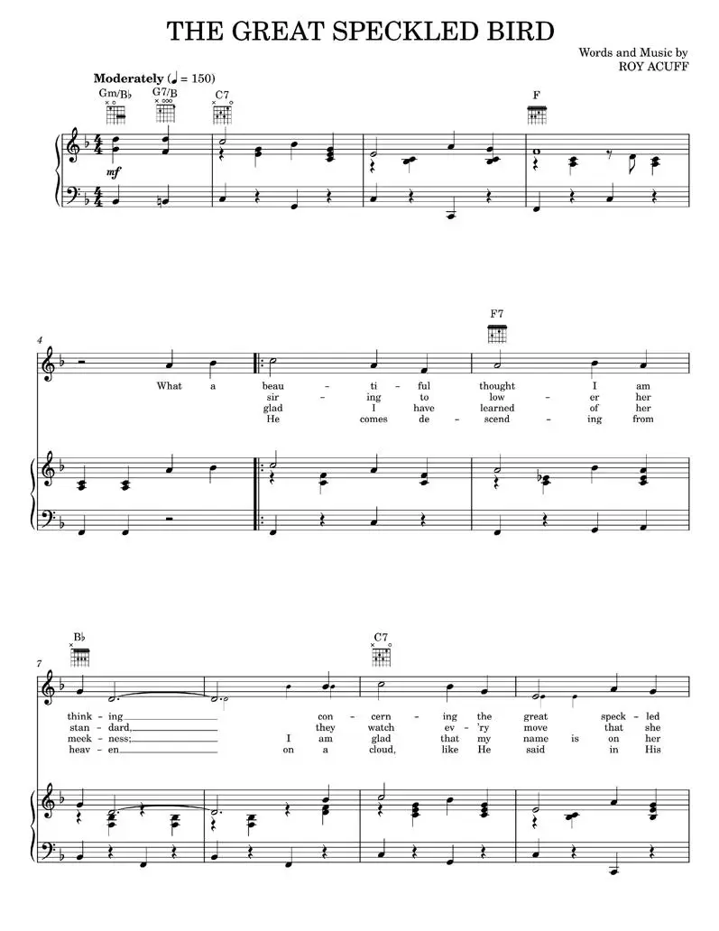 The Great Speckled Bird - Roy Acuff, The Carter Family (Piano-Vocal-Guitar)