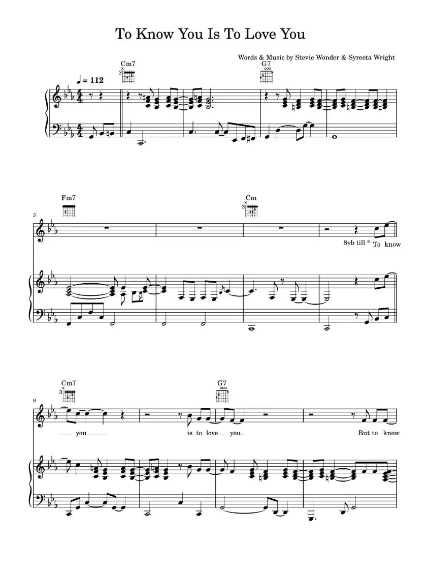 To Know You, Is To Love You - Syreeta Wright (Piano-Vocal-Guitar (Piano Accompaniment))