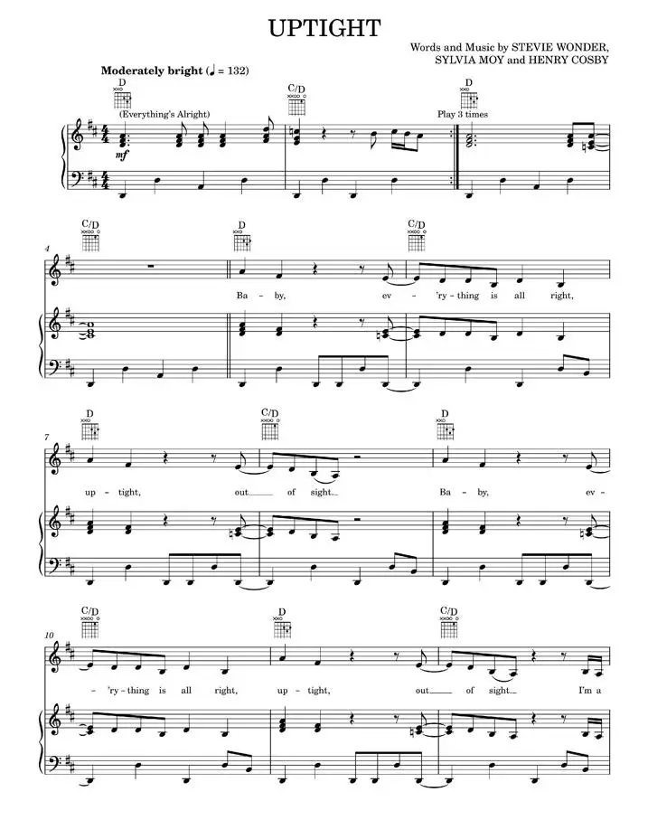 Uptight (Everything's Alright) - Stevie Wonder (Piano-Vocal-Guitar)