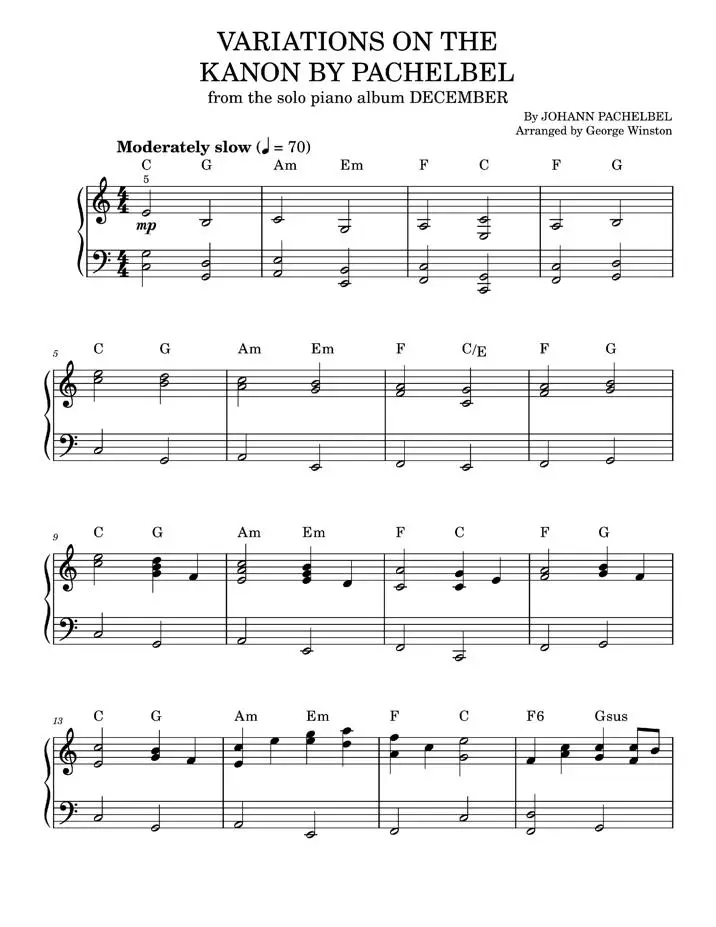 Variations on the kanon by Pachelbel - George Winston (Easy Piano)