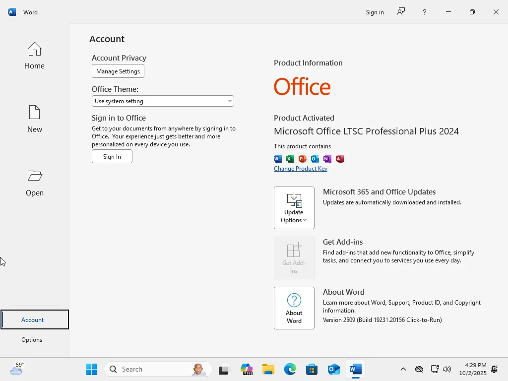 Update Office To vv2509 Build 19231.20156