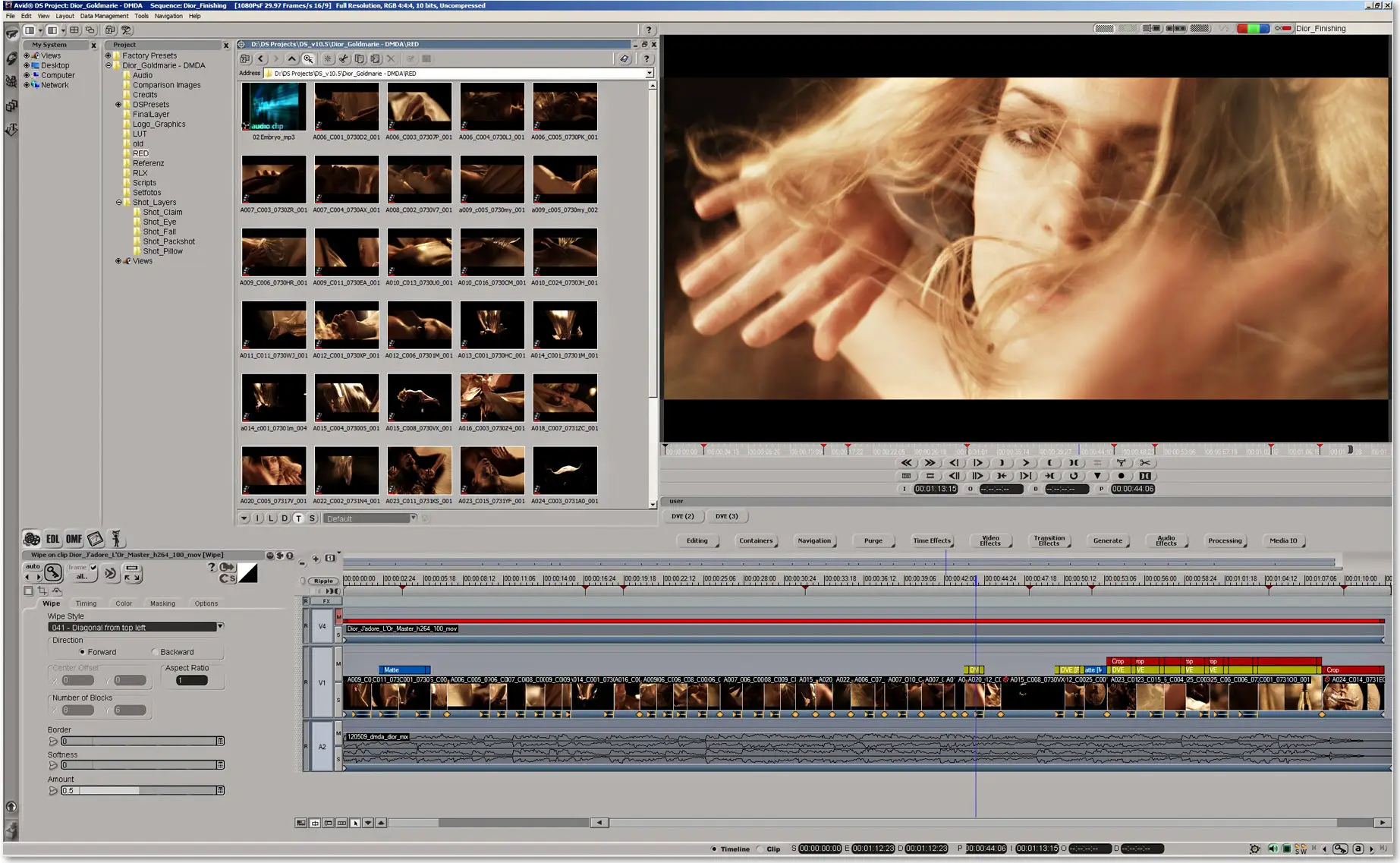 Create the right look with powerful color grading tools. Clean up footage and add effects, titles, and end credits. Speed up your workflow with real-time 2K, HD 44 RGB, and HD 4:2:2 YUV playback and integrated DPX, R3D, and ARRIRAW file support. It?s the perfect solution for TV productions; no matter what resolution the show is finished, Avid DS adapts to the required resolution or color space.