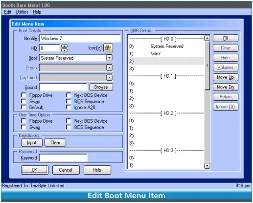 - Supports hiding/unhiding partitions, “swapping” of drives, and partition table order for each boot item.