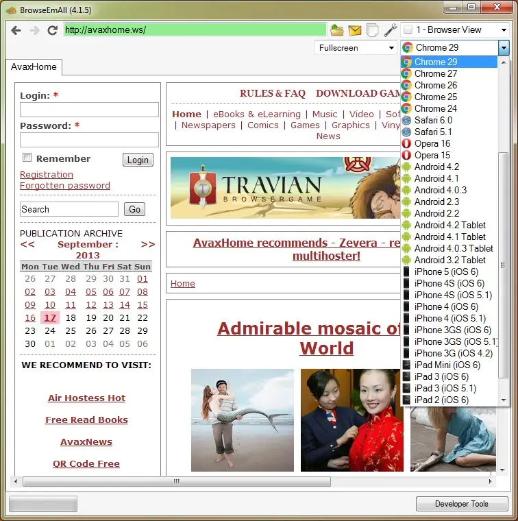 All major desktop browsers available: Internet Explorer, Firefox, Chrome and Safari