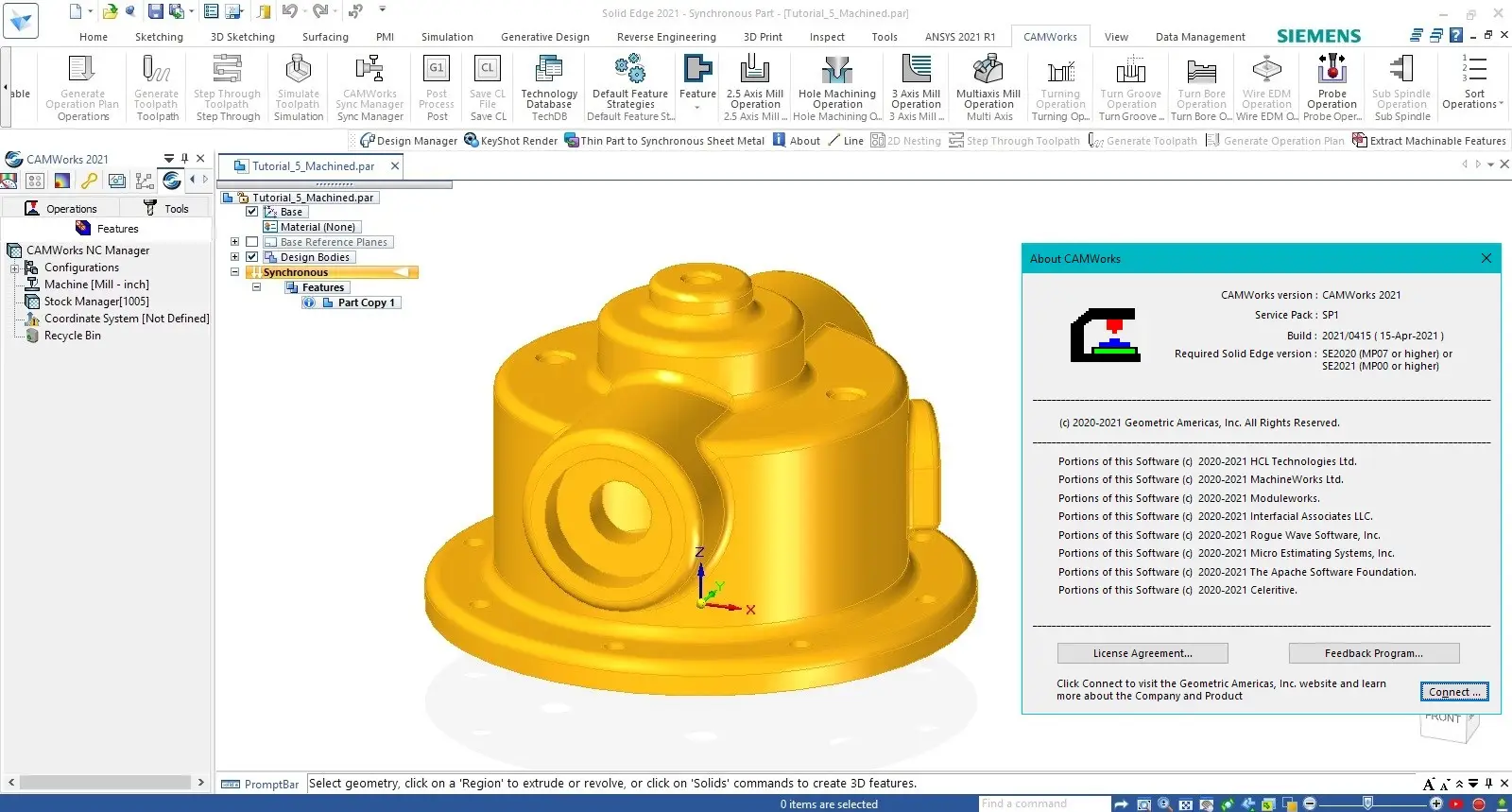 CAMWorks 2021 SP1 for Solid Edge