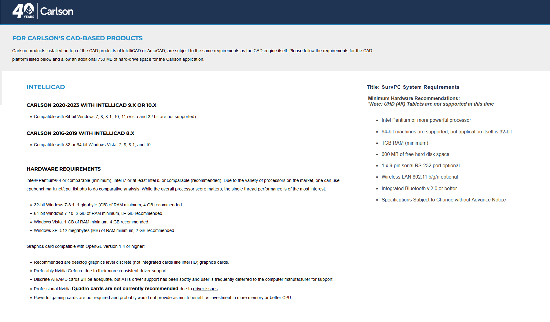 Founded in 1983, Carlson Software Inc. specializes in CAD design software, field data collection, laser measurement and machine control products for the civil engineering, surveying, GIS, construction, and mining industries worldwide, providing one-source technology solutions for the entire project cycle. Carlson Software is headquartered in Maysville, Ky., U.S.A., with branch offices in Boston, Mass.; Almere, The Netherlands; Brisbane, Australia; Ottawa, Canada; and York, England.