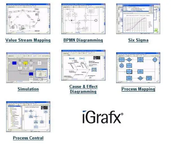 iGrafx Enterprise Central and Enterprise Modeler are collaboration solutions that align company processes, resources, and systems with corporate goals and strategies to effectively enable compliance management, risk management, enterprise architecture and quality improvement initiatives. Through data integration and visual workflows, these collaborative solutions enabled organizations to develop comprehensive organizational models with multidimensional views of business processes, supporting systems, technology components and resources.