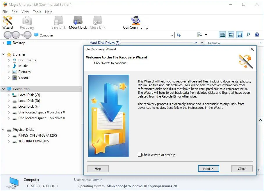 Undelete files in few easy steps! Magic Uneraser is the simplest and easiest to use data recovery tool among the bunch of tools offered on this site. Recover files of any type from FAT and NTFS partitions! Magic Uneraser supports all types of storage media including hard disks, flash drives, digital cameras and memory cards.